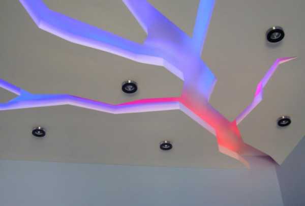 Фигурные натяжные или подвесные конструкции с подсветкой внутри, предоставляют прекрасную возможность создать оригинальное и удобное освещение с эффектом рассеивания или мерцания.