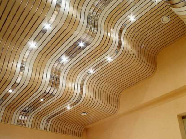 Криволинейные рейки, расположенные вдоль, поперек или по диагонали, предоставляют отличную возможность создавать интересные переходы и выступы на потолочной плоскости. Кроме того, они смотрятся очень оригинально, а благодаря различным вставкам под серебро или золото, такие изделия отлично вписываются в разные стили, например лофт или хай-тек.