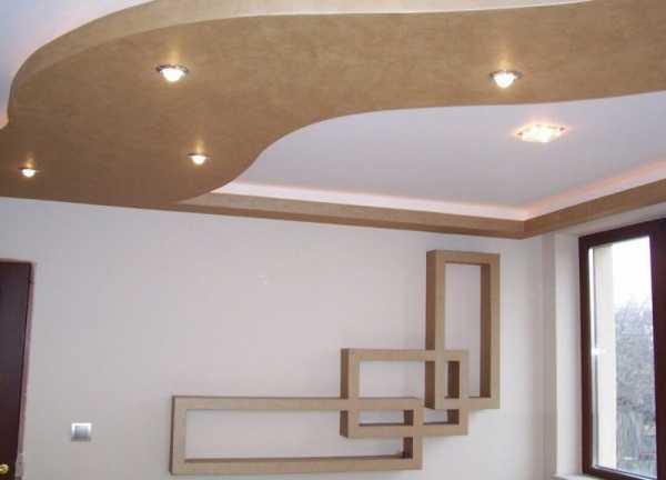 Фигурные потолки из гипсокартона помогают создавать не только идеально ровный потолок, но и собрать настоящую полочную систему.
