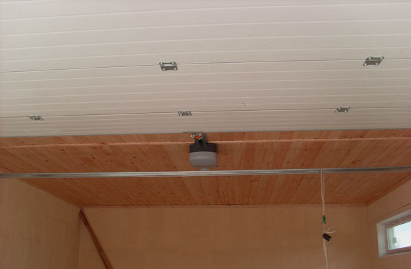 Выбирая, чем подшить потолок в гараже быстро и недорого, стоит обратить внимание на плиты ПВХ. Листы выпускаются в разном размере, цвете и толщине, стоят недорого и укладываются очень быстро.