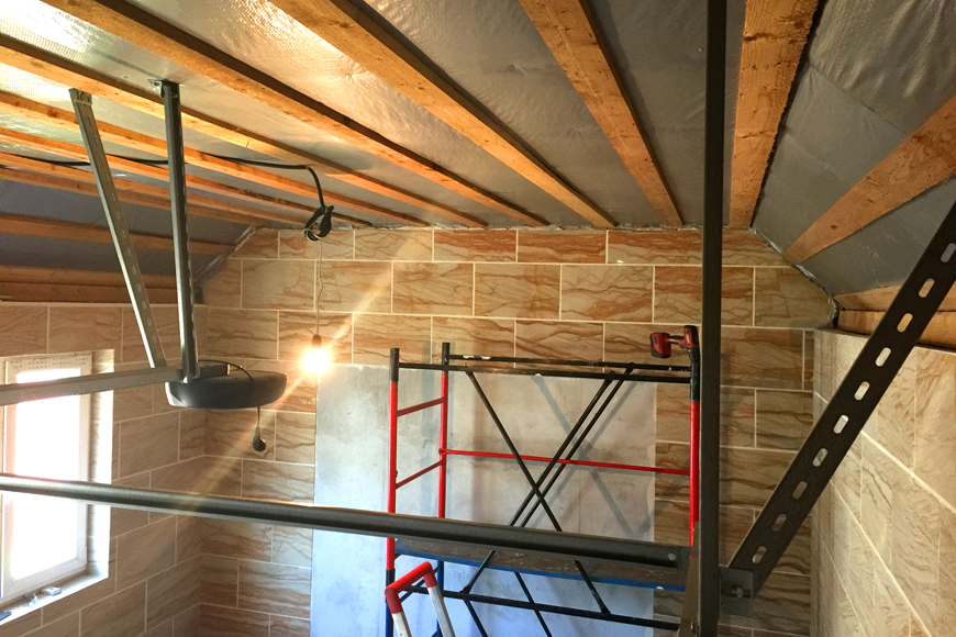 Наиболее затратным считается утепляющая отделка потолка и стен. Применяют пенопласт, пеноизол или пенополистирол, а также специальную пленку — гидробарьер. Минеральная вата не годится для этой цели, она собирает влагу и становится бесполезной.
