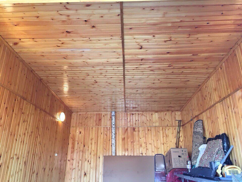 Минусы есть, вагонка хорошо горит и может повреждаться плесенью. Нивелировать недостатки поможет обработка антипиреном и антисептиком, биозащитными составами. Если нужно потолок в гараже обшить дешево, красиво, вагонка подойдет лучше всего – материал экологически чистый, выглядит эстетично, служит не менее 20 лет.