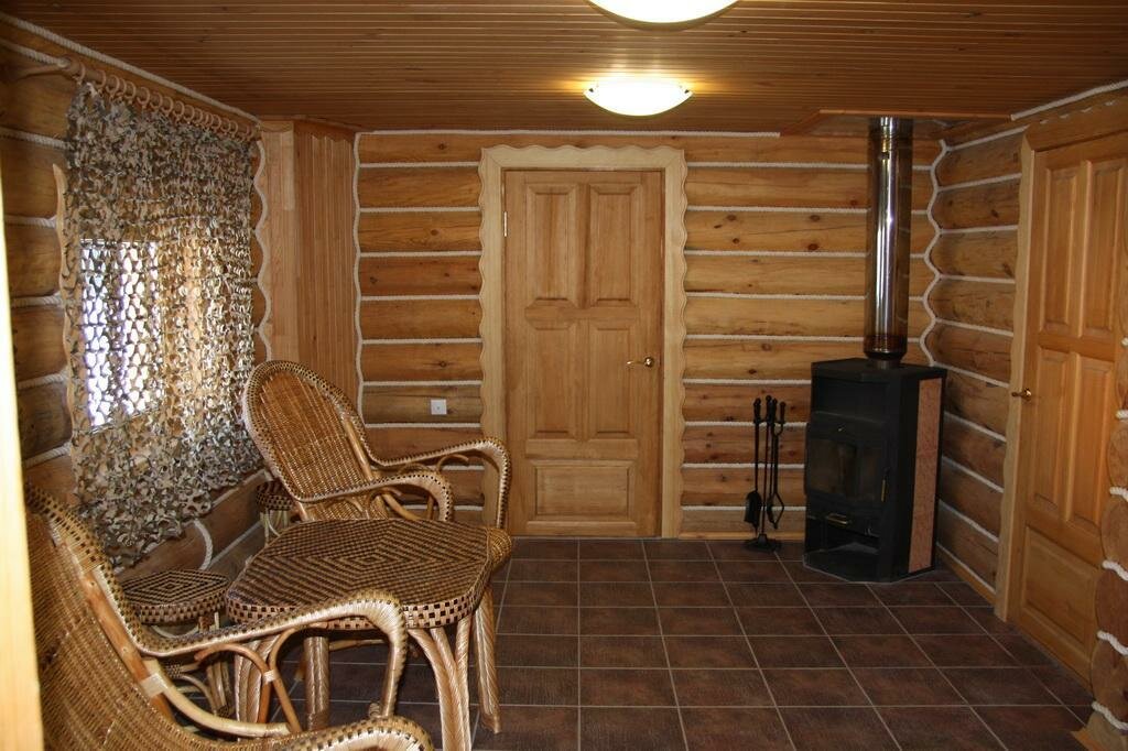 Пол и потолок – также деревянные, на потолке обычно организуют балки.