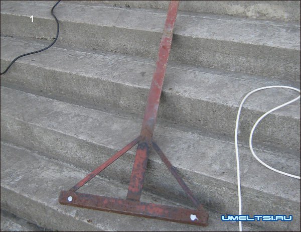 За основу была взята стойка из уголка — рис.1. Еще несколько кусков и несложных изделий из металла — рис.2, 3, 4. пришлось скрепить болтами, предварительно высверлив в необходимых для соединения местах, отверстия. Можно применить сварку.
