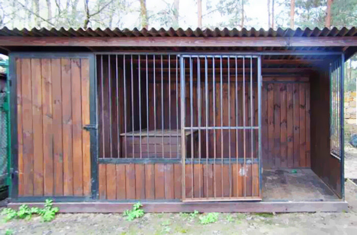 Площадь вольера не должна меньше чем 4 кв.метра, иначе это негативно отразится на здоровье животного. Вольер может быть как закрытым, так и без крыши. Небольшие постройки обычно имеют одну или две глухие стены для защиты от ветра.