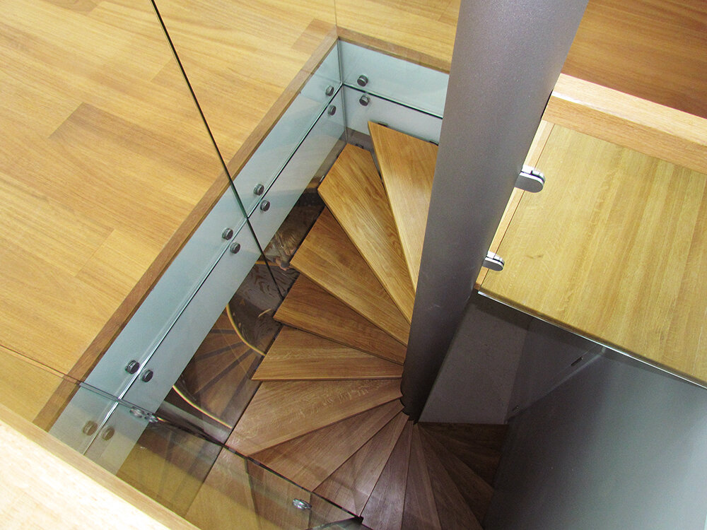 Онся оригинально и больше всего подходит для лестниц винтового типа. При выборе данного проёма следует, что верхние ступени должны находиться прямо под этой окружностью. Внешний диаметр определяется, исходя из размера конструкции.