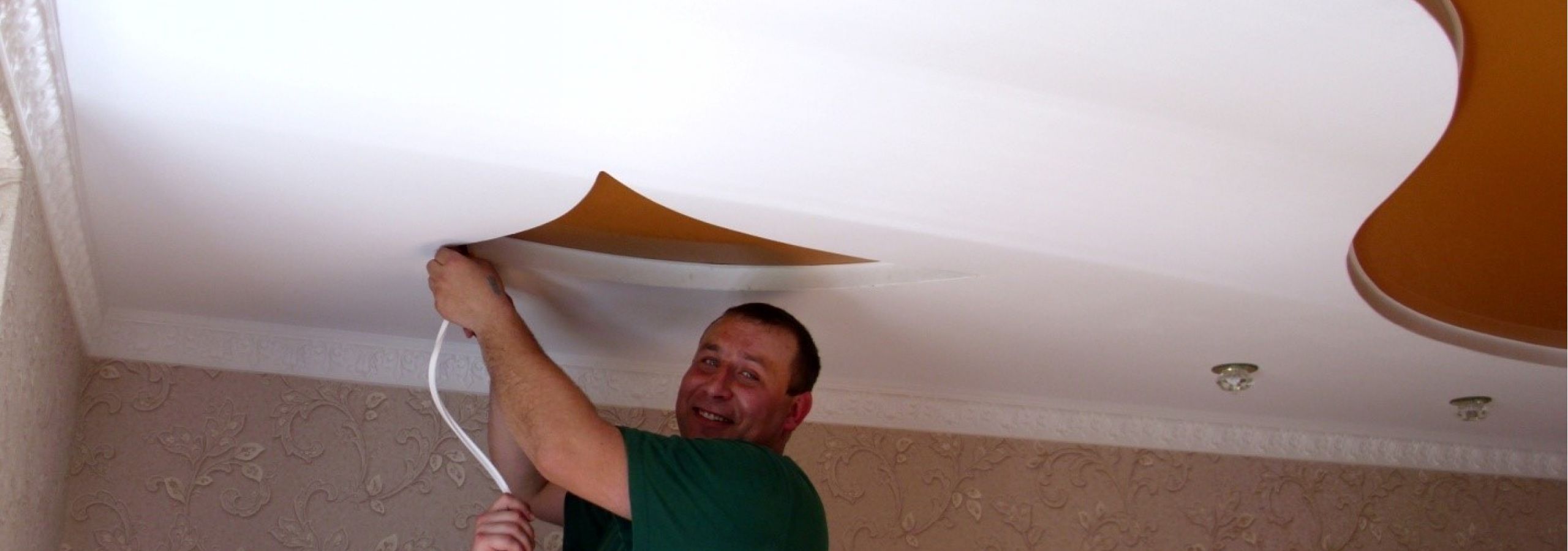 Как сделать своими руками ремонт натяжных потолков ПВХ после распила: основные этапы