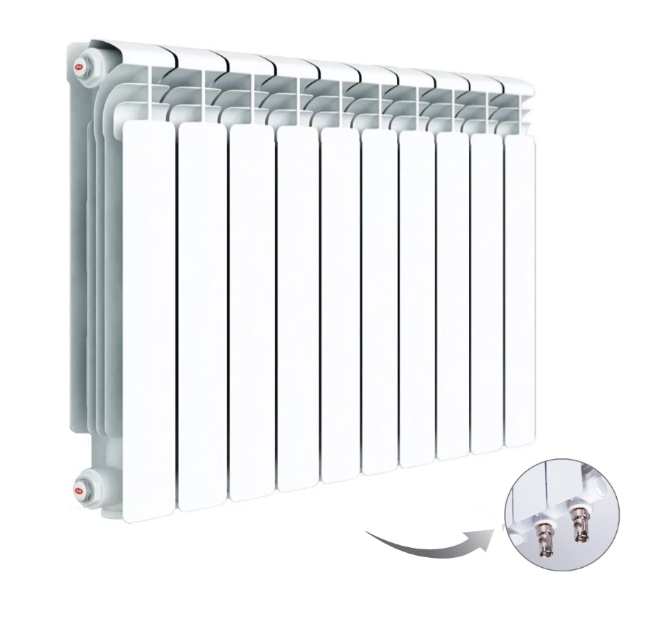 Этот тип радиаторов соединил лучшие свойства алюминиевых радиаторов с полезными качествами стали. Благодаря прочности стали биметаллические радиаторы выдерживают большее давление (для многих из них рабочее давление составляет 20-30 и более атм.) и позволяют снизить требования к качеству (pH) теплоносителя, которые очень существенны при использовании обычных алюминиевых.
