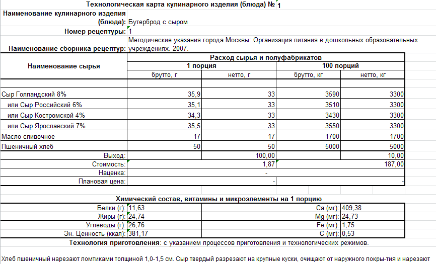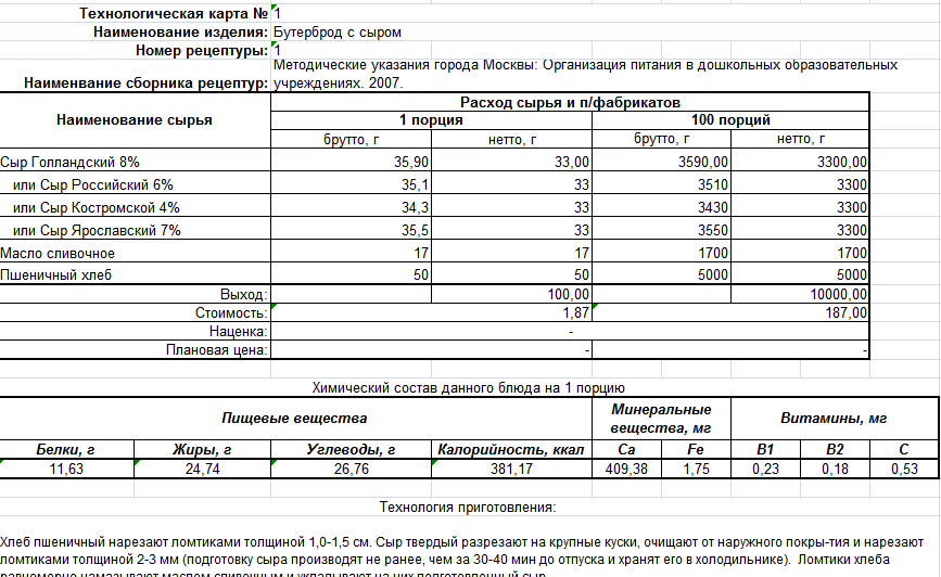 Составление рецептов готовых блюд. Калькулятор рецептов. Анализатор рецептов.
