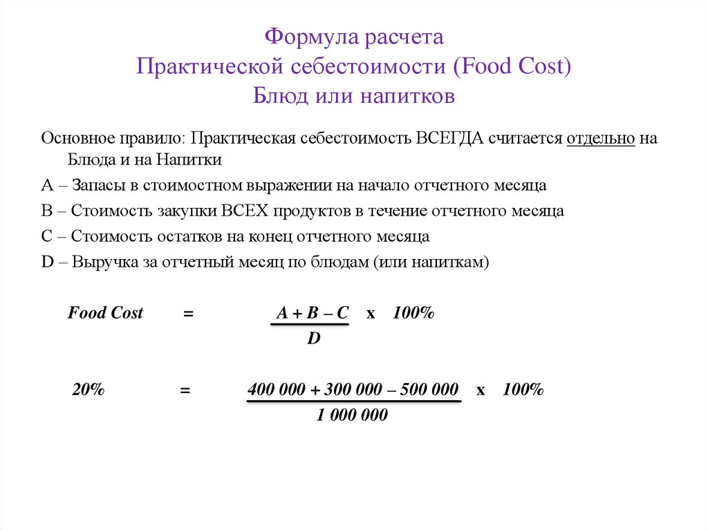 Формула стоимости еды — Как рассчитать процент стоимости еды — Aptito