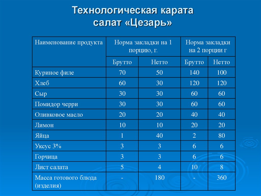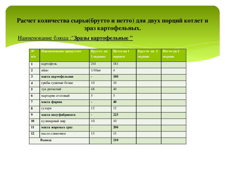 Расчет калорийности сложного блюда