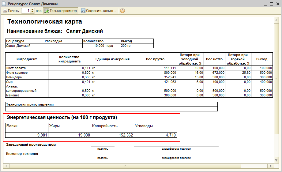 Расчет калорийности готовых блюд
