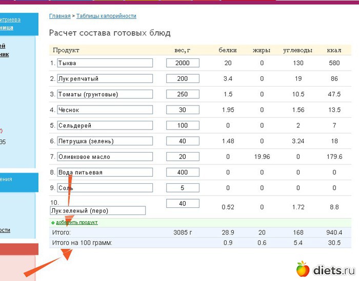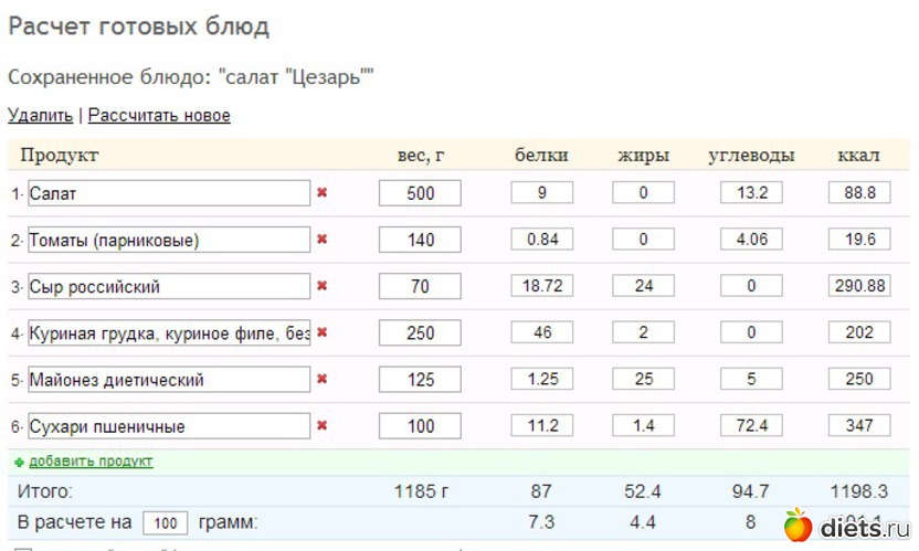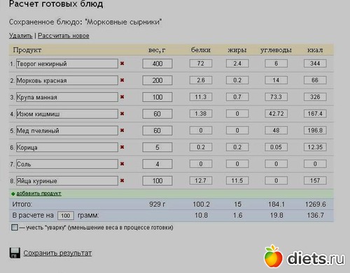 Расчет калорийности готовых блюд | Калькулятор калорий продуктов