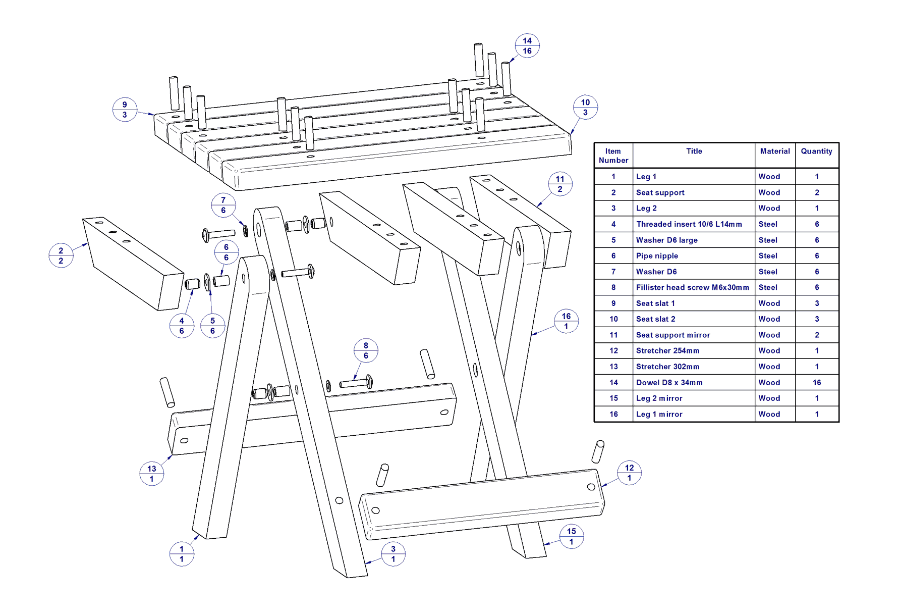 Складной стул табурет: подробные чертежи, схема сборки и фото.