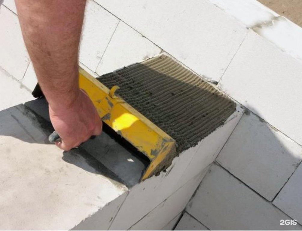 Цементный раствор на пеноблоки нужно наносить и разравнивать специальной кельмой или емкостью с ребристыми краями.