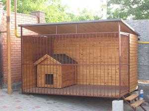 Уже в выполненный вольер, представленный на фото, устанавливается будка, которую также можно выполнить самостоятельно.