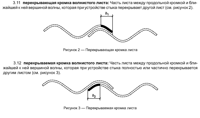 Важно: чтобы нахлесты материала были максимально плотными и удобными, две крайние волны каждого пласта кровли имеют несколько другие габариты, отличающиеся от параметров основных волн (это вполне допустимо по ГОСТ).