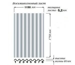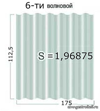 Полезная площадь 8-волнового шифера при габаритах 1750x1150x5,8 мм составит всего – 1,6 кв.
