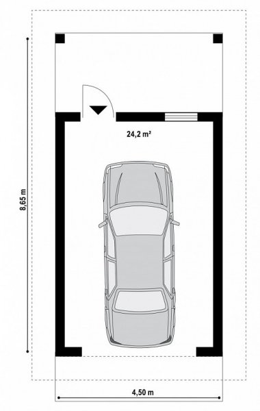 Гараж на одну машинуДаже если гараж для машины возведен на территории частного участка, на него распространяется действие ГОСТ и СНИП. Данными документами установлены минимальные размеры, которое может иметь строение, предназначенное для хранения легкового авто.