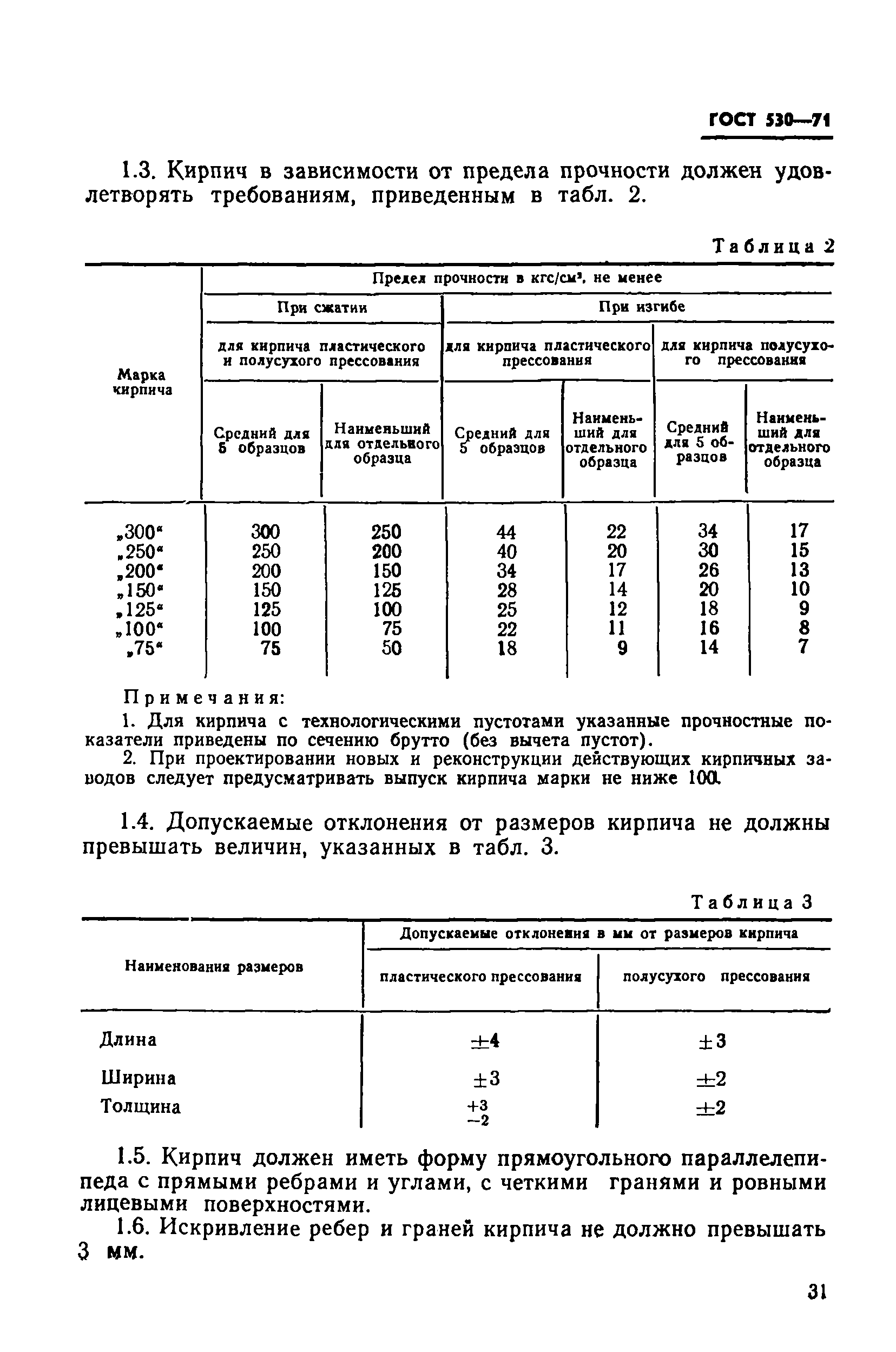 3.7. Марку камня по прочности устанавливают по значению предела прочности при сжатии, а кирпича — по значению пределов прочности при сжатии и изгибе.