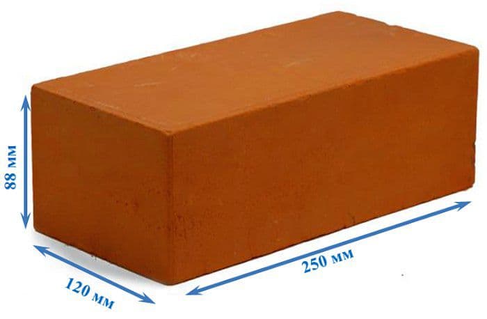 | Кирпич одинарный | 250 мм | 120 мм | 65 мм |