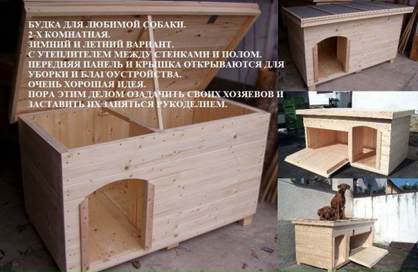 Как и всякое строительство, изготовление домика для вашего любимца начинается с определения места его размещения и конструкции. Лучшим вариантом будет установка собачьей будки в вольере. Это позволяет решить сразу несколько задач: