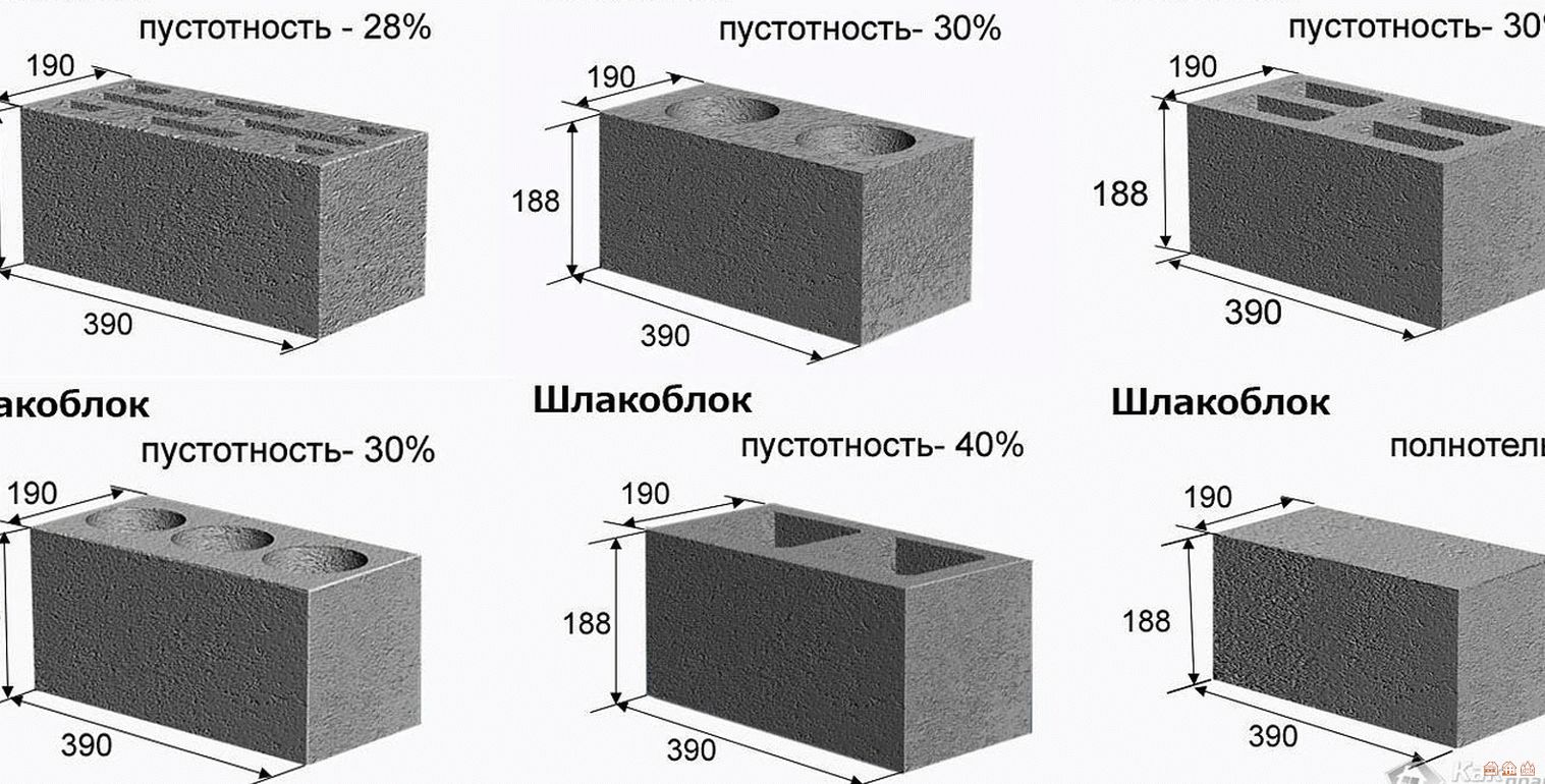 Давайте определимся, какой же вид шлакоблока лучше выбрать для работы. Для того чтобы ответить на этот вопрос, мы рассмотрим виды шлакоблоков, отличающиеся друг от друга по пустотности (наличии полостей и их общий объём).