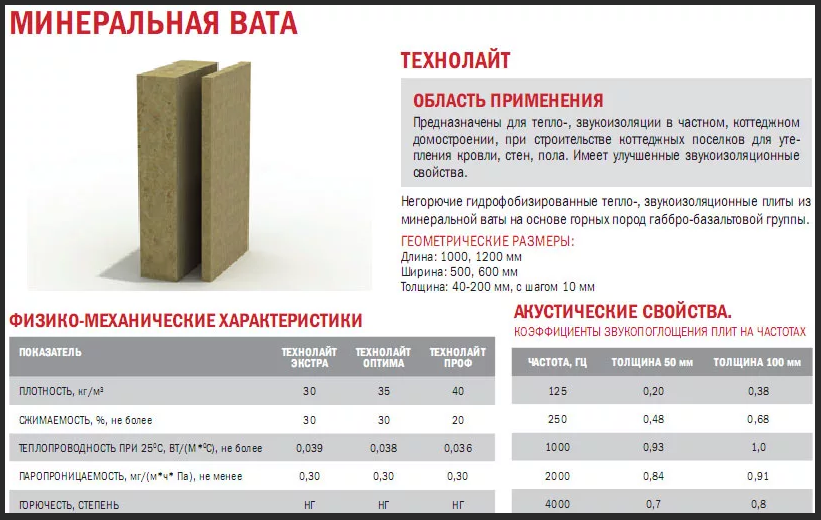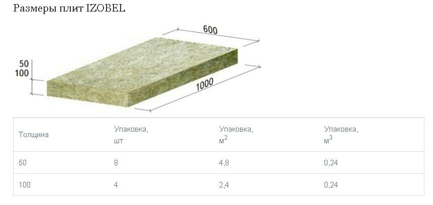 Размеры утеплителя (базальтовой плиты) и его характеристики