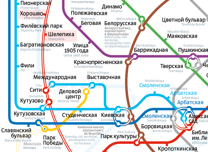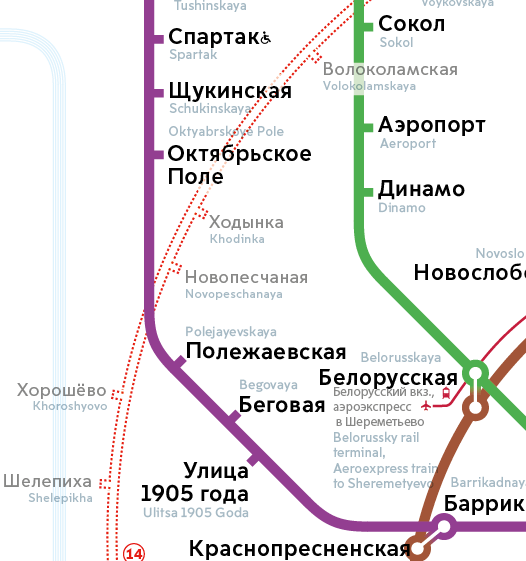 Но все разрешимо: разводим «Щукинскую» и «Спартак», чтобы поставить «Волоколамскую», а «Новопесчаную» ставим над «Хорошево».