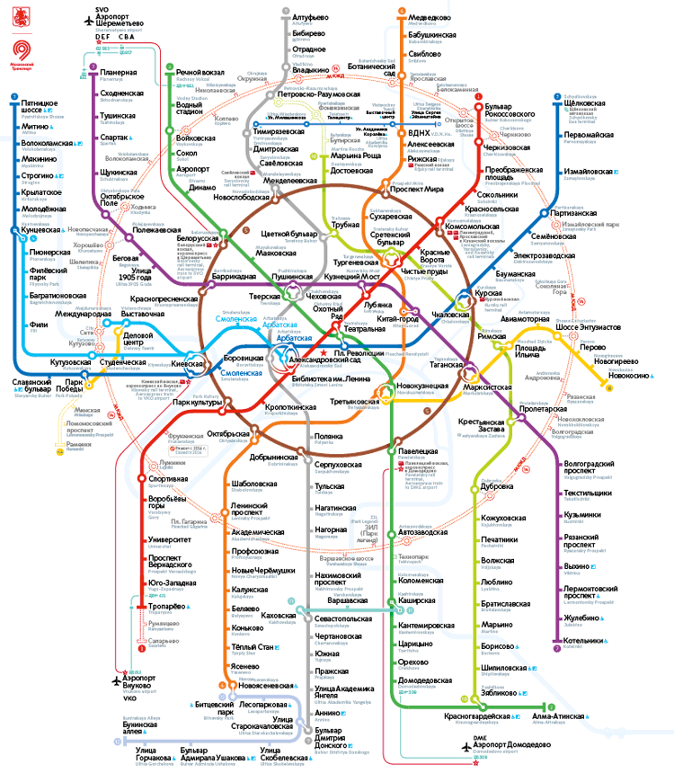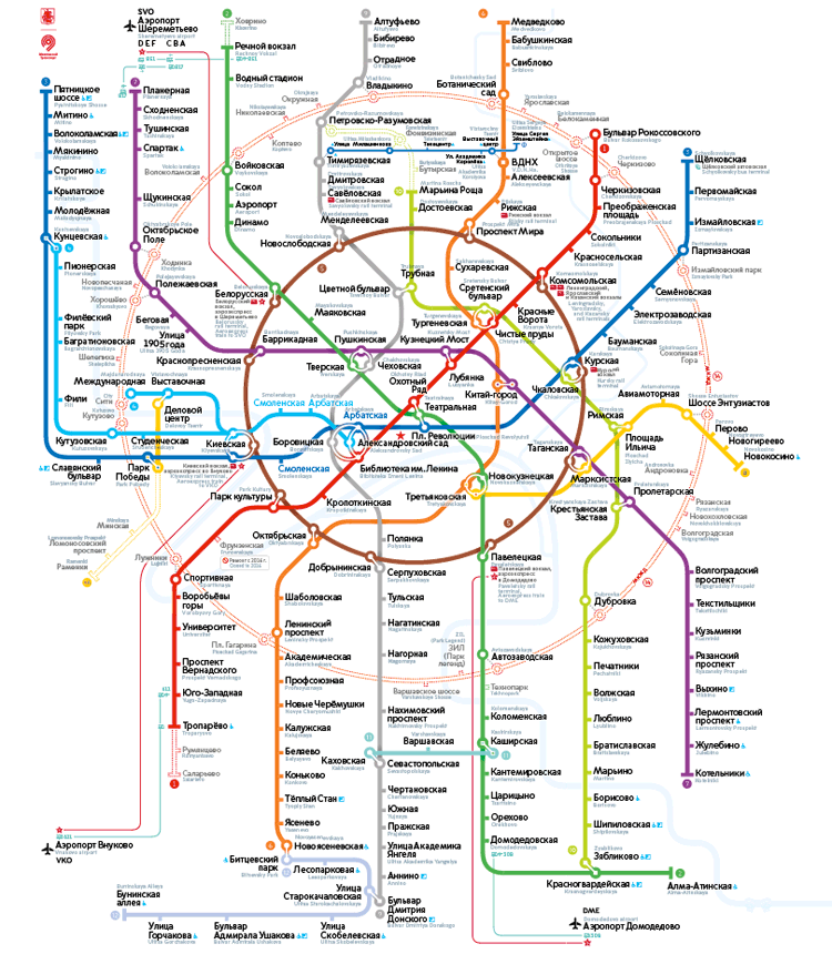 Ежегодно схема московского метро становится сложней, поэтому если человек оказывается там впервые, то он имеет все шансы потеряться. Чтобы такого не случилось, лучше сначала ознакомить со схемой метро и узнать, где всё-таки проходит метро в Москве. Сегодня центральное кольцо Москвы соединяет основные станции, при этом создаются удобные пересадочные точки на каждой линии. В общей сложности по ветвям подземки курсируют около 130 составов с интервалом 2-5 минут. К сожалению, такой вид транспорта имеет свой специфический запах, который получается в результате смеси запаха пропитки шпал с машинным маслом и металлом. Почти каждая станция метро находится глубоко под землёй, по этой причине некоторые пассажиры могут почувствовать перепады атмосферного давления.