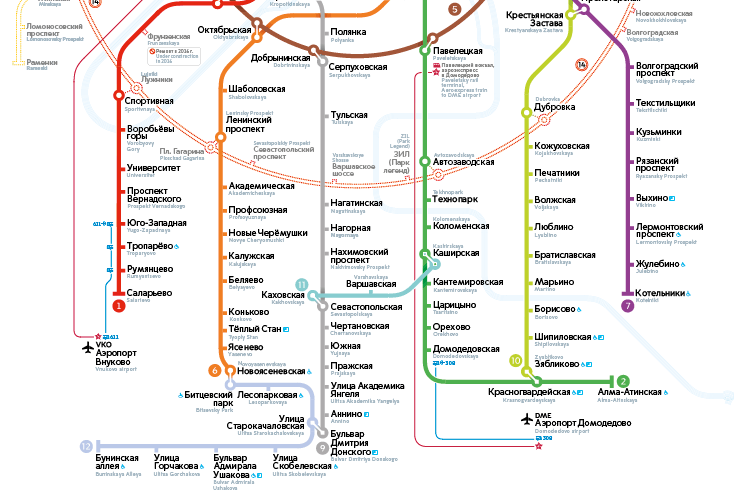 Карты metro moscow представлены с расчётом новых станций и веток.