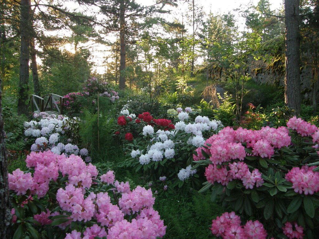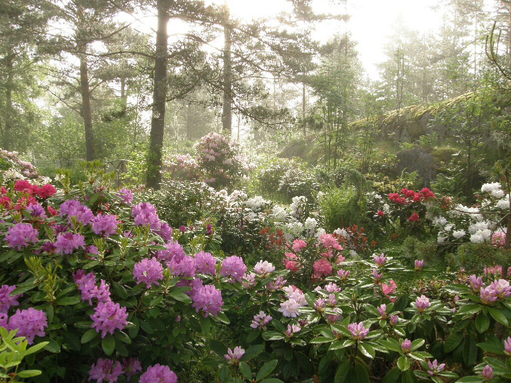Подбирая место для посадки рододендронов необходимо, чтобы эти красивые растения были на виду, например у террасы или рядом с уголком для отдыха, откуда ничто не помешает любоваться их пышной красотой в пору цветения.