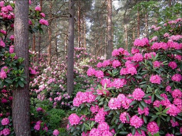 В собранной на этой странице фотогалерее мы предлагаем посмотреть варианты использования рододендрона (азалии) в ландшафтном дизайне. Вашему вниманию представлены качественные снимки самых красивых парков и садов, где его обильноцветущие кусты можно увидеть в максимально возможном великолепии.