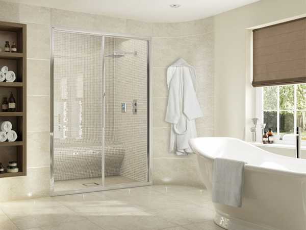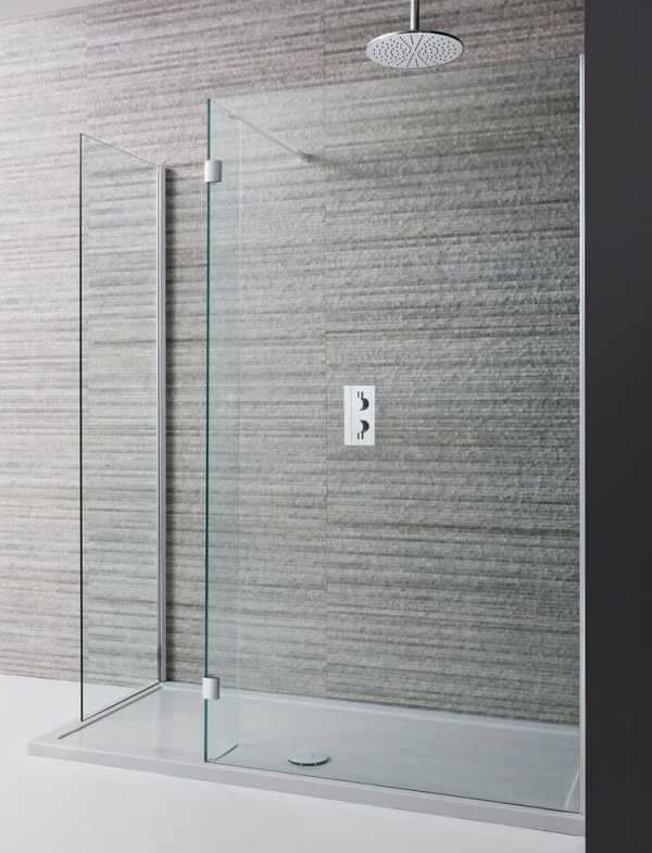 - А вот двери для кабинки бывают не только пластиковые, но и стеклянные.