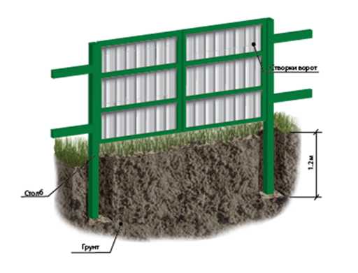 - в выбранном месте выкопать ямы для столбов глубиной 70−100 сантиметров;