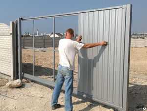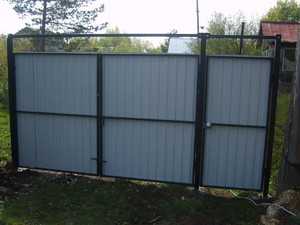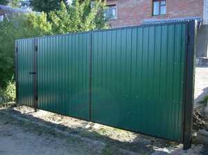 Если сооружение строится для собственного двора, и будет надобность постоянного передвижения людей, то желательно также вмонтировать калитку. В таком случае необходимо установить крепкие опоры для того, чтобы они могли выдержать увеличенную массу конструкции.