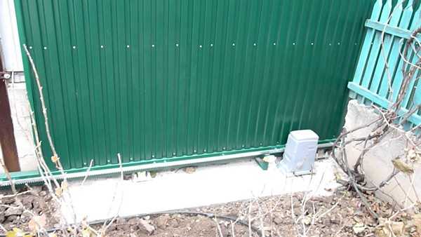 Естественно, нужно будет позаботиться и о подаче электроэнергии к приводу – этот нюанс нужно предусмотреть заранее. Кабель прокладывается под землей в металлической гофре и выводится на поверхность в центре бетонного основания для привода. Как правило, для подключения двигателя раздвижных ворот используется кабель сечением не менее чем 2,5 квадрата. И не забудьте про заземление!