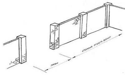 - Для начала опоры. Здесь можно использовать практически любой материал – все зависит от самого забора. Если он кирпичный, то ворота можно навесить между двумя кирпичными столбиками, если металлический или из профнастила, то на крайние металлические столбики. В общем, первый этап работ – это изготовление опор.