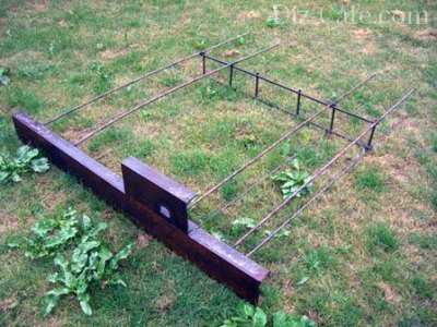 Затем к швеллеру приваривают отрезки заготовленной арматуры таким образом, чтобы получилось два ряда «грабель». Потом всё это укрепляют поперечными рядами арматуры. Получившуюся конструкцию размещают в яме вниз арматурой. Причем швеллер должен быть установлен параллельно ограждению и строго горизонтально, и своим боком обязательно примыкать к стояку ограждения.