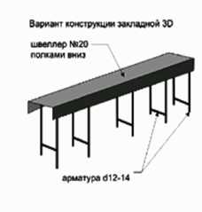 В яму необходимо установить закладную деталь. Для ее изготовления необходим швеллер длиной 2 м и шириной 15-16 см, а также прутья арматуры любого диаметра. Длина прутьев равна полутора метрам – именно на такую глубину они погрузятся в яму. Арматуру следует прикрепить к швеллеру с помощью сварки. Зафиксировав продольные прутья, скрепляем их между собой поперечными перекладинами так, чтобы получилась прочная решетка.