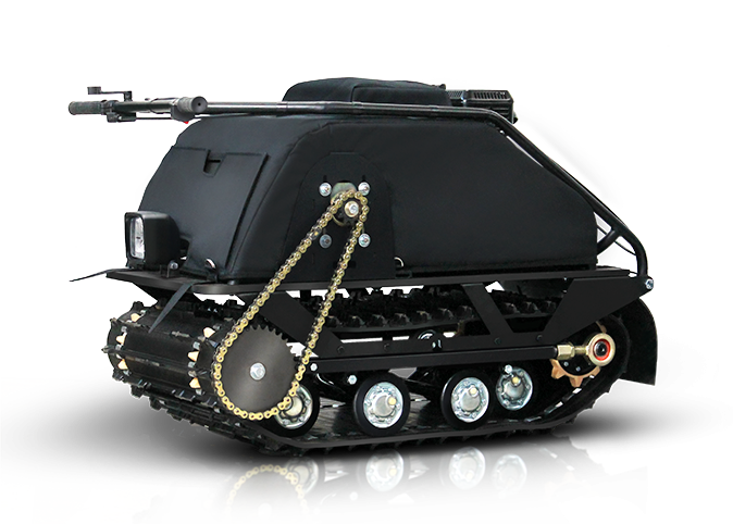 Трансмиссия — редуктор, в отличии от вариатора, позволяет сместить двигатель максимально вперед, это обеспечивает идеальную развесовку и феноменальную управляемость. Оснащается двигателями мощностью 6,5 л.с. Перевозить 2х людей или 1 одного человека с грузом общей массой до 200 кг, в зависимости от глубины снежного покрова. Буксируя массу до 100 кг., с легкостью справляется со снежным покровом глубиной 35-40 см.