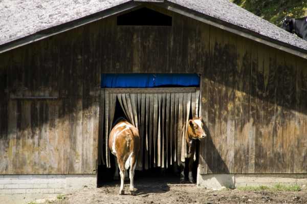 | Окна и двери | Окон должно быть достаточно, чтобы в помещении было светло. Желательно сделать их застекленными, с отрывающимися фрамугами. Расположить большую часть оконным проемов стоит на южной стороне. Двери можно сделать на противоположной. Проемы должны быть широкими, чтобы через них можно было беспрепятственно выносить отходы жизнедеятельности и заносить внутрь корма. В коровнике имеет смысл сделать двустворчатые двери. |