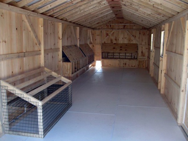 Если вы планируете содержать животных не только летом, но и зимой, нужно позаботиться, чтобы пол был теплым. Для этого делают бетонную или цементную стяжку, устойчивую к воздействиям грызунов и влаги, поверх которой укладывают лаги, слой гидроизоляции и утеплителя, и зашивают досками. Желательно обработать дощатый пол масляной пропиткой и покрасить, чтобы древесина не напитывалась влагой не гнила.