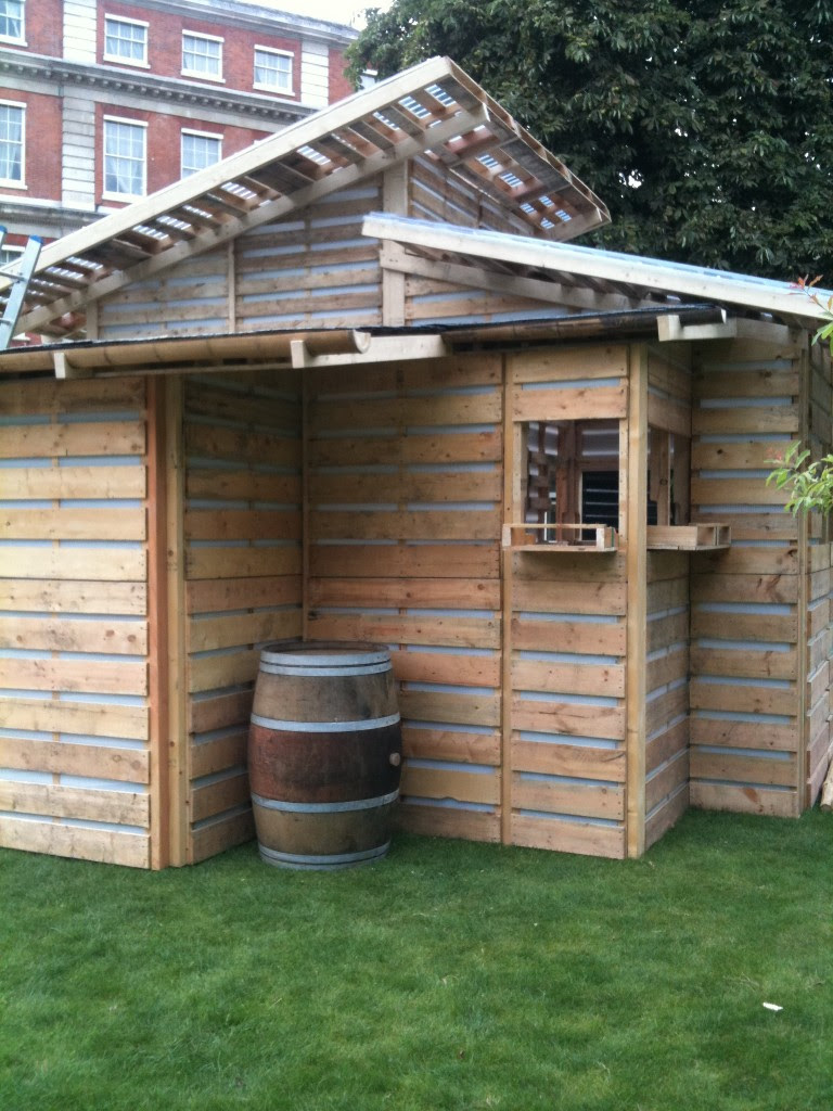 При строительстве этого садового сарая из поддонов, автор придерживался двух простых правил: во-первых, использовать только бэушные материалы, поэтому вполне логично, что первая мысль была о поддонах.