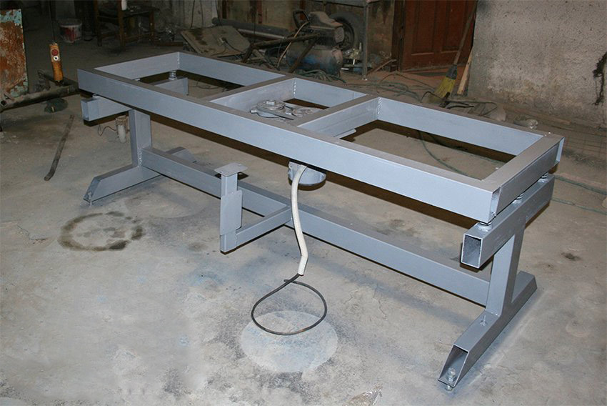 К середине столешницы с обратной стороны приваривается швеллер, к которому прикрепляют вибратор.