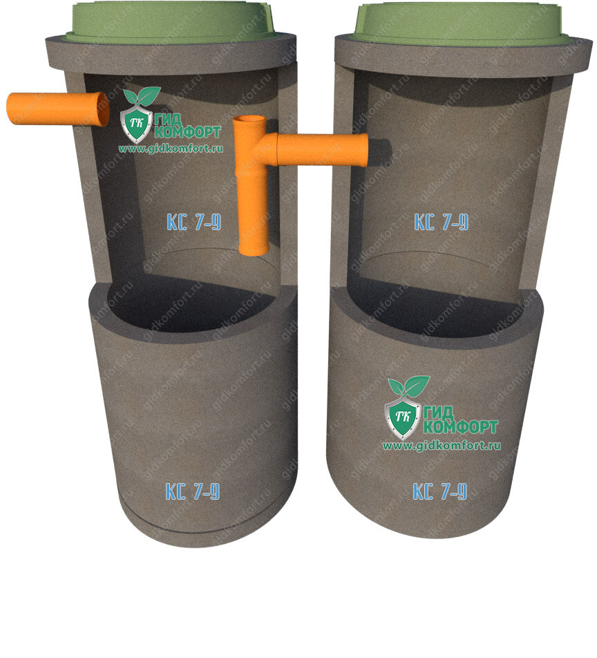 - КС-10.9 — кольцо диаметром 1 метр и высотой 90 см.Его объем составляет 0,71 куб. м .;