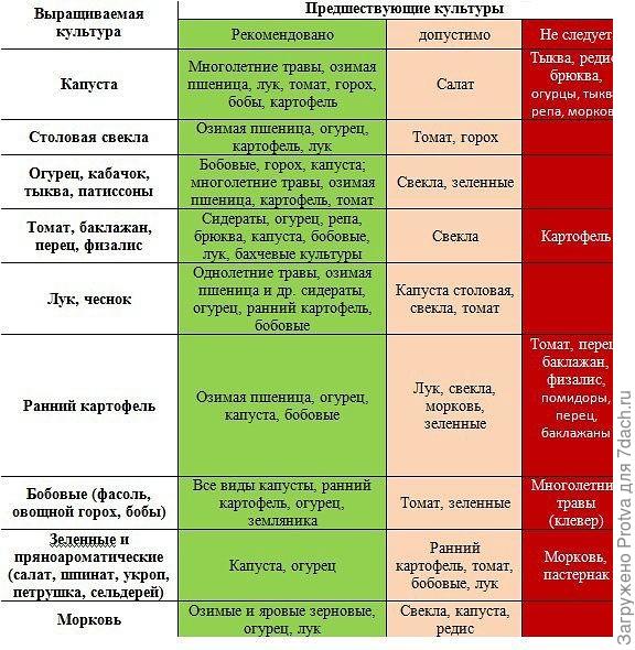 Приводим таблицу, по которой нужно ориентироваться при составлении чередования культур.