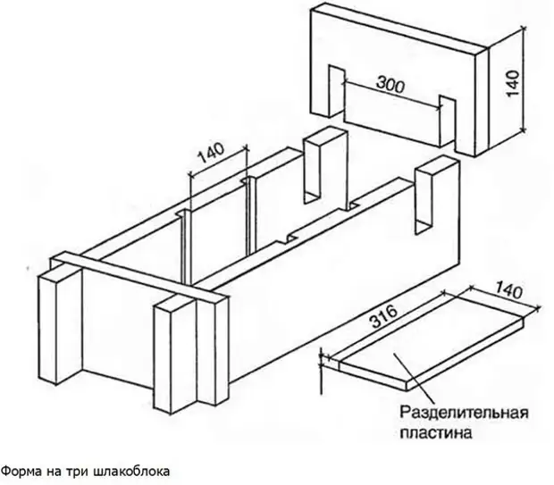 Изделия, изготовленные в бытовых условиях, могут сильно отличаться от размеров, принятых в промышленном производстве, например, пользуются спросом блоки 300х140х140мм.