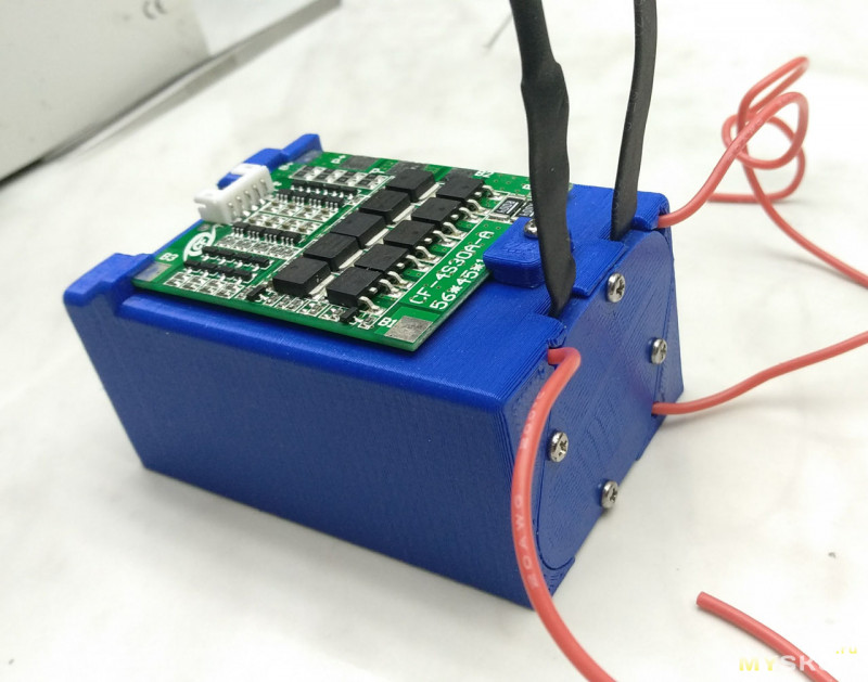 Туда же впаял провода от межбаночных соединений. Хотя, как я уже писал, можно было припаять их на соответствующие контакты платы BMS, но тут есть и неудобство — чтобы вытащить аккумуляторы нужно будет отпаивать от BMS не только плюс и минус, но и еще три провода, а сейчас можно просто выдернуть разъем.