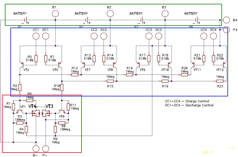 Эта часть отвечает за защиту ячеек от перезаряда/переразряда и она же отвечает за общую защиту от КЗ: